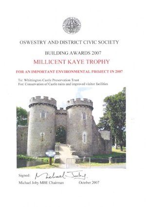 - Awarded by Oswestry and Civic Society for The Conservation of Castle ruins and improved visitor facilities.