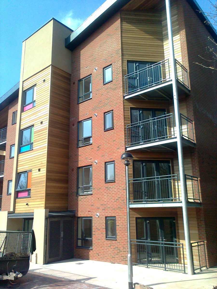 The redevelopment works in Wellington comprised 11 flats and 9 houses (2 disabled units) all units achieved Code for Sustainable Homes Level 4. The development included several sustainable technologies such as a green roof, extensive photovoltaic cells and thin joint blockwork.