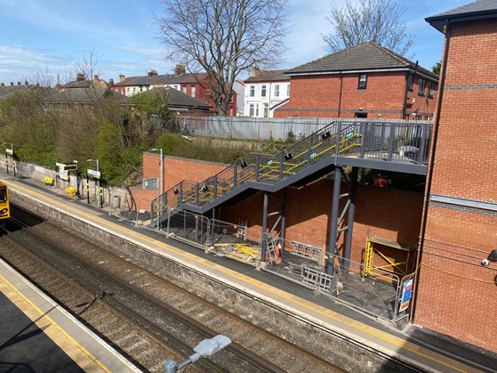 - Major enabling works included extensive earthworks and platform widening at Platform 1 (Liverpool-bound) using a sheet-piled retaining wall system.